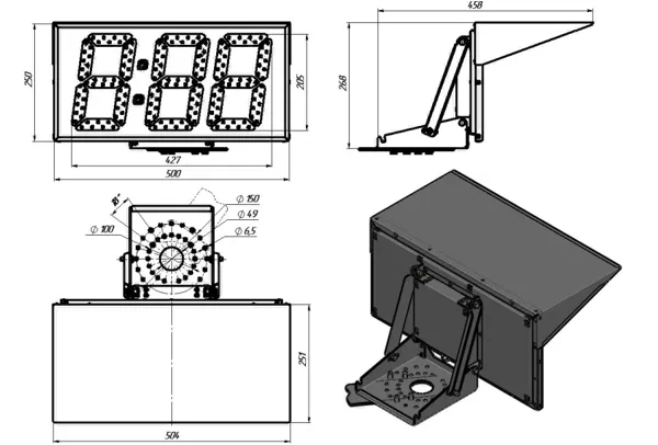Табло имеет складной кронштейн крепления и козырек, закрывающий лицевую панель при транспортировке,что позволяет удобно и безопасно транспортировать изделие.